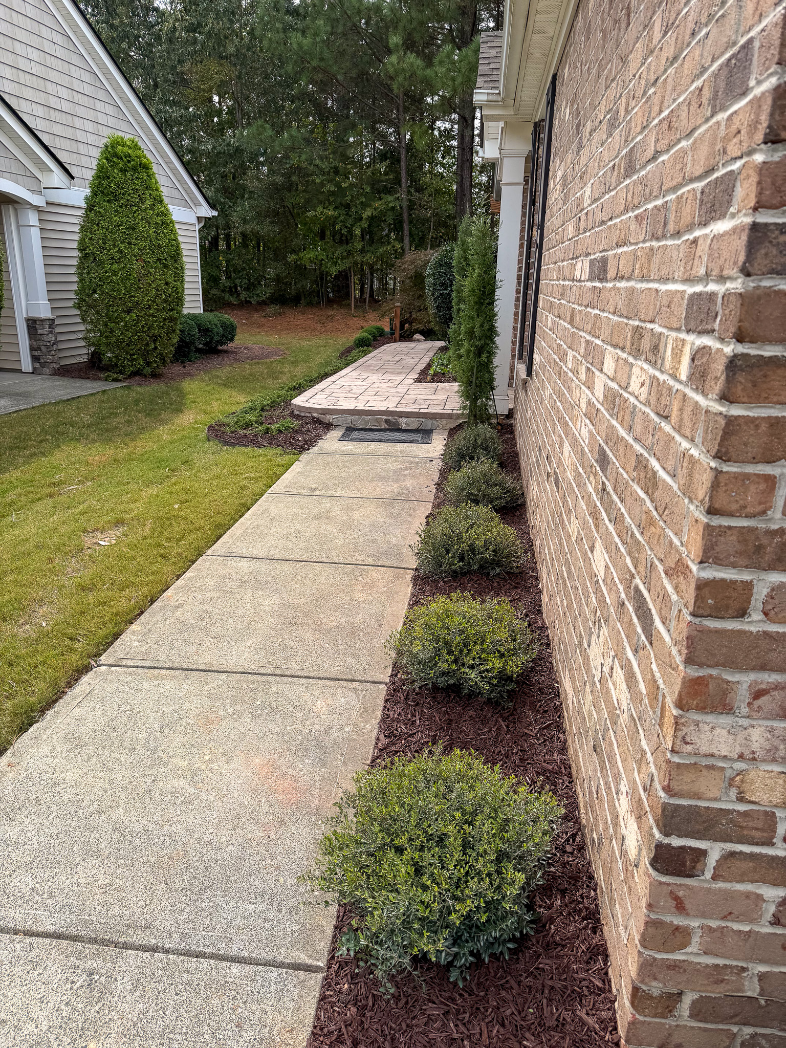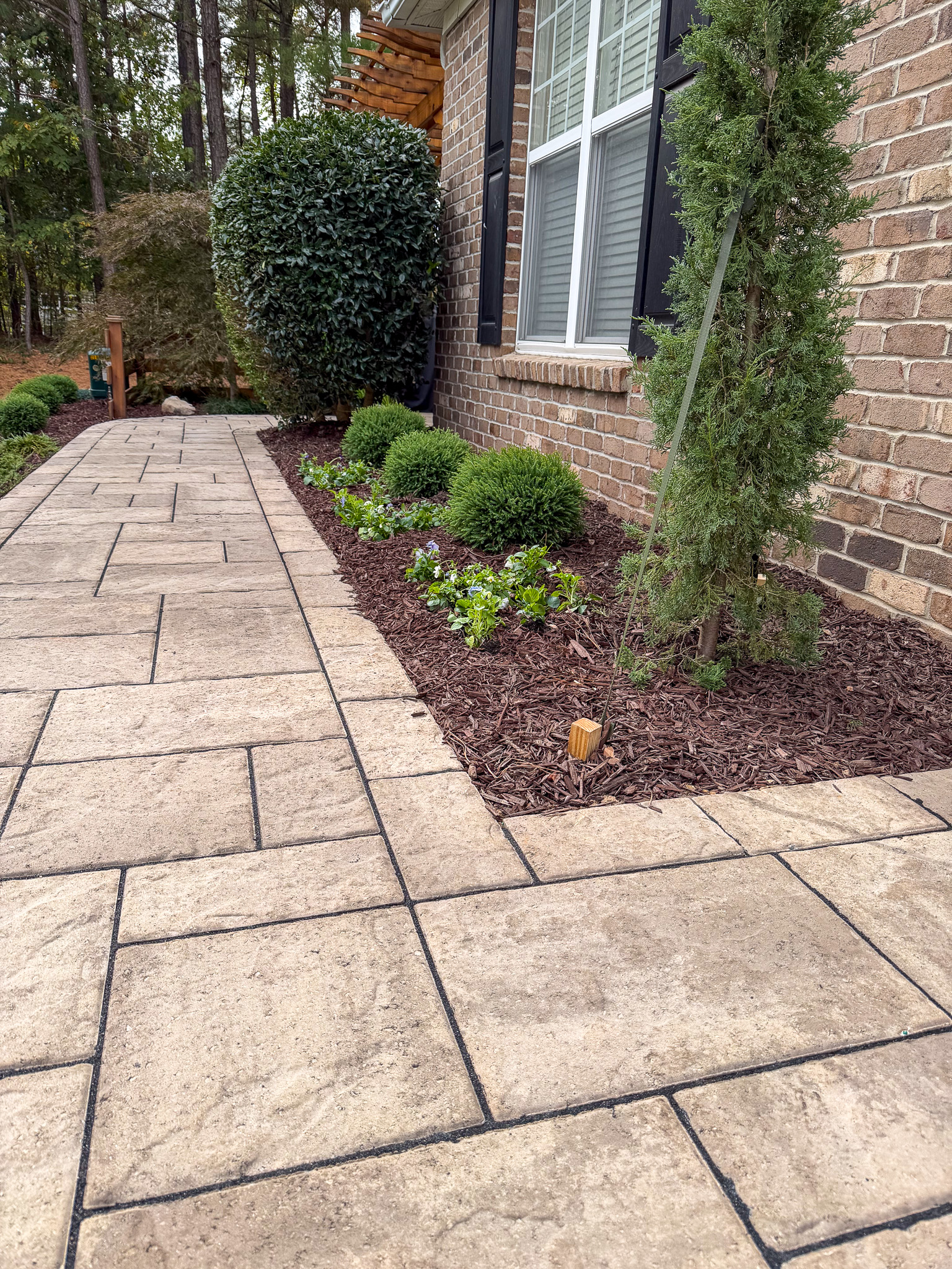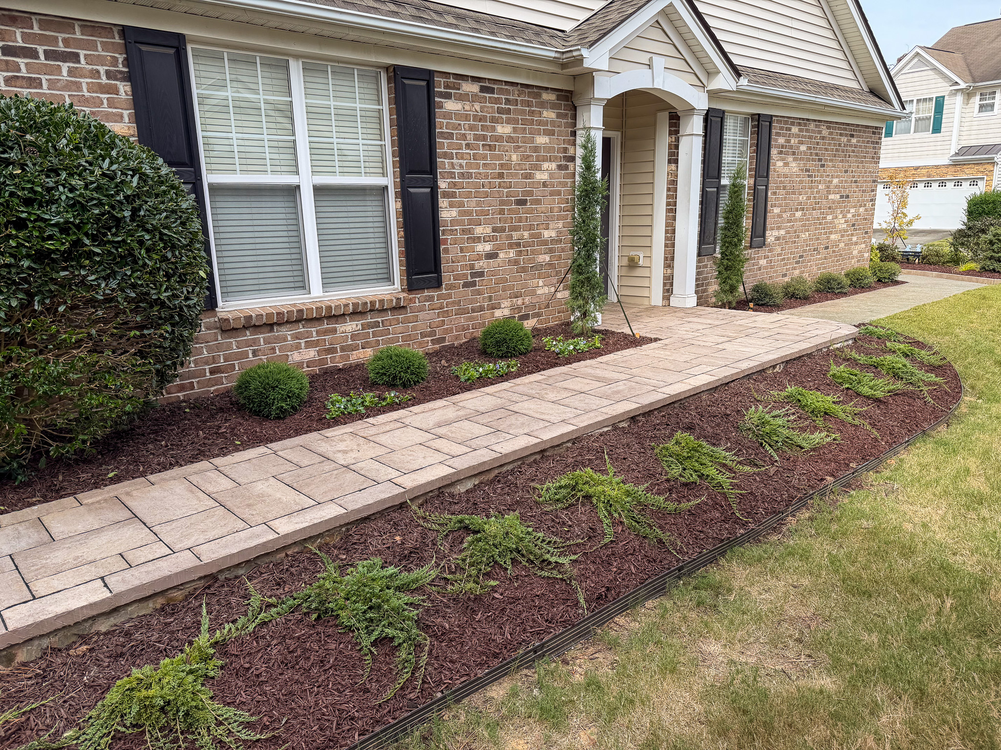 Front Yard Curb Appeal: New walkways, garden beds, lighting, sod installation.