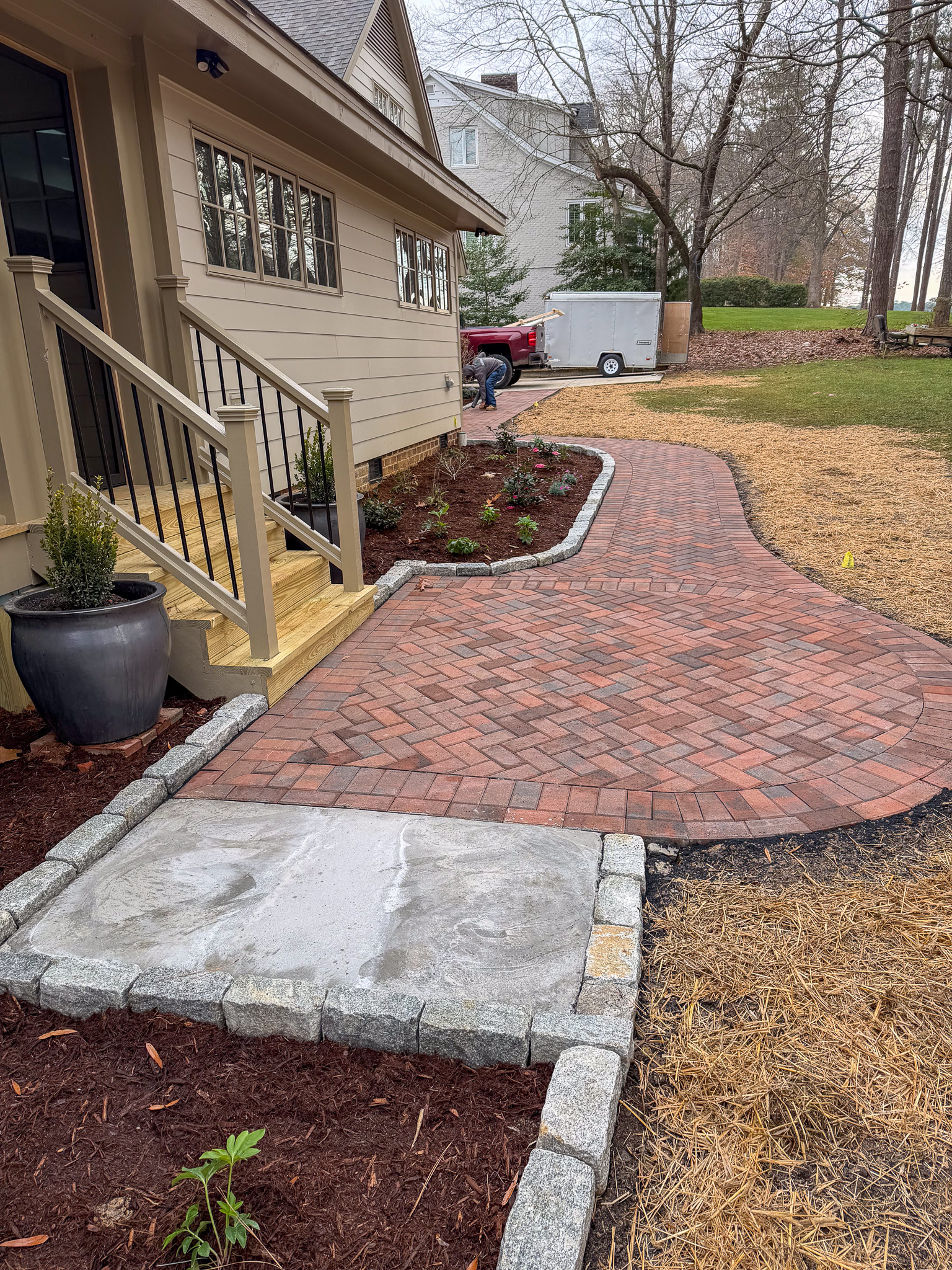 Backyard Transformations: Patio, firepit, native plantings, drainage solutions.